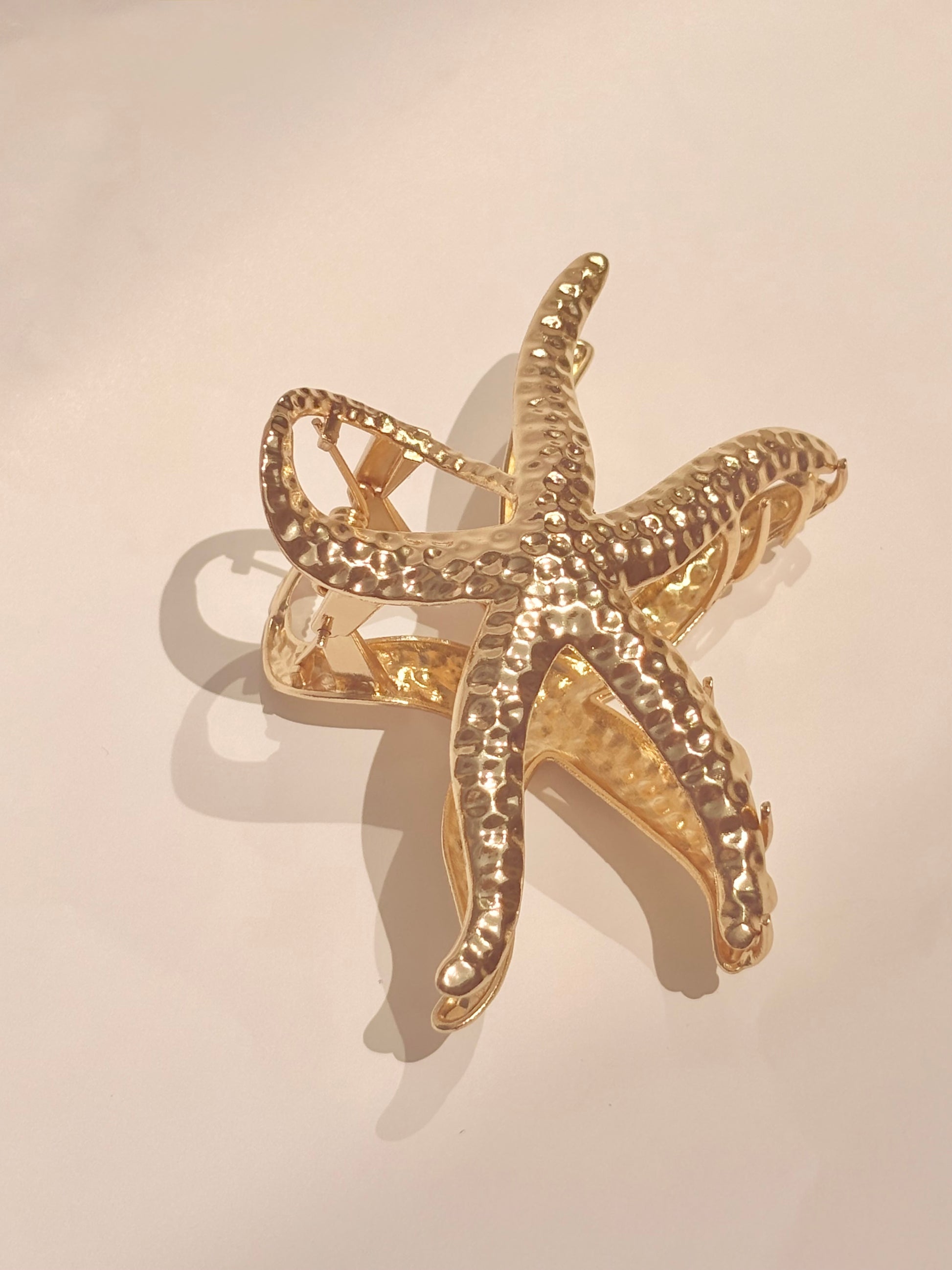 Affirmez votre esprit bord de mer avec une pince à cheveux dorée en forme d’étoile de mer. Inspirée des trésors marins, elle scintille subtilement et transforme une simple coiffure en ode à l’été. Parfaite pour celles qui aiment les accessoires dorés, solaires et symboliques, mêle charme océanique et élégance intemporelle.