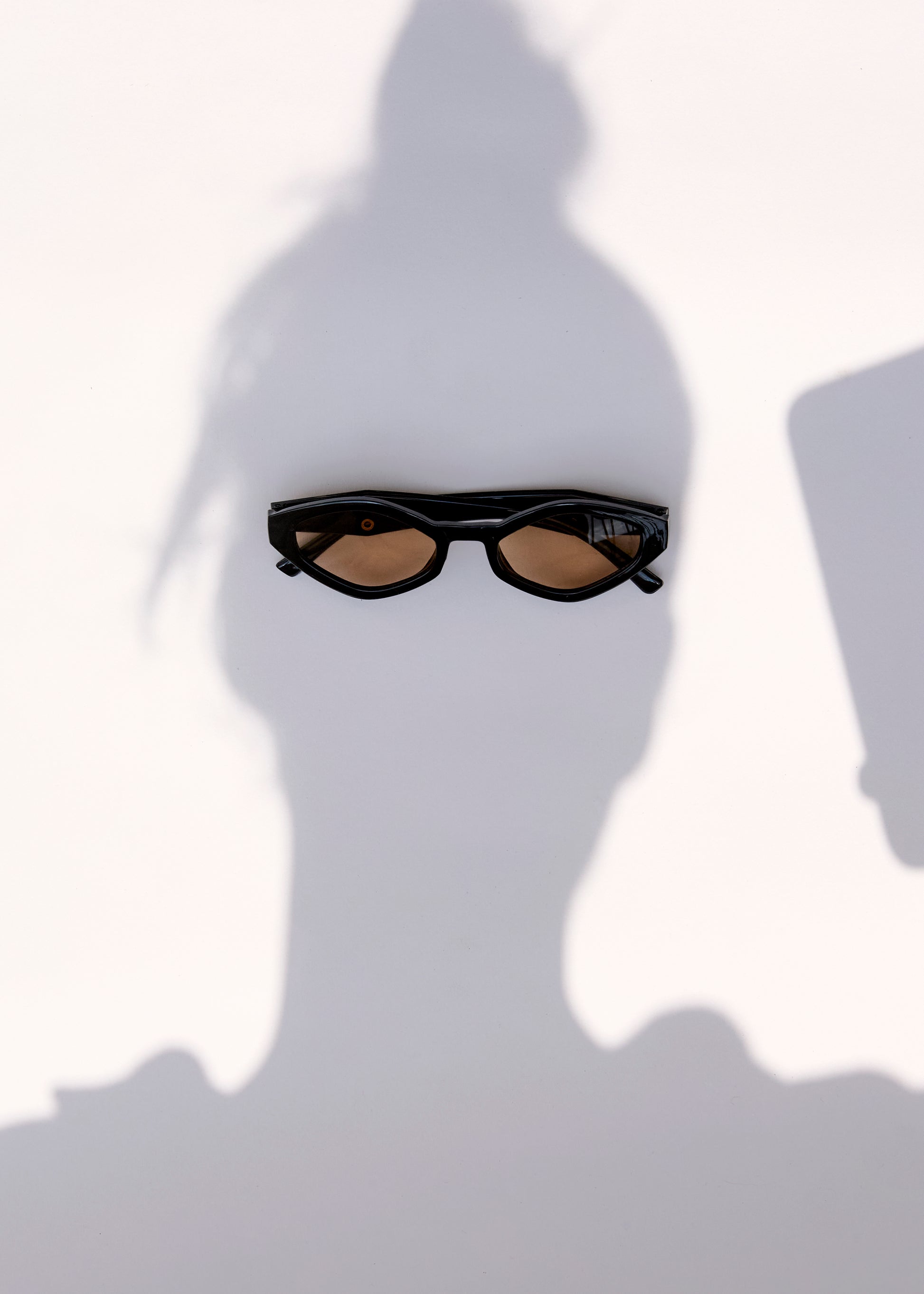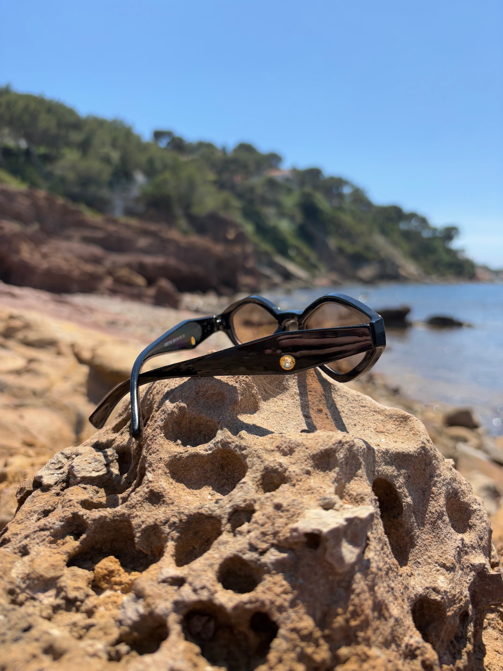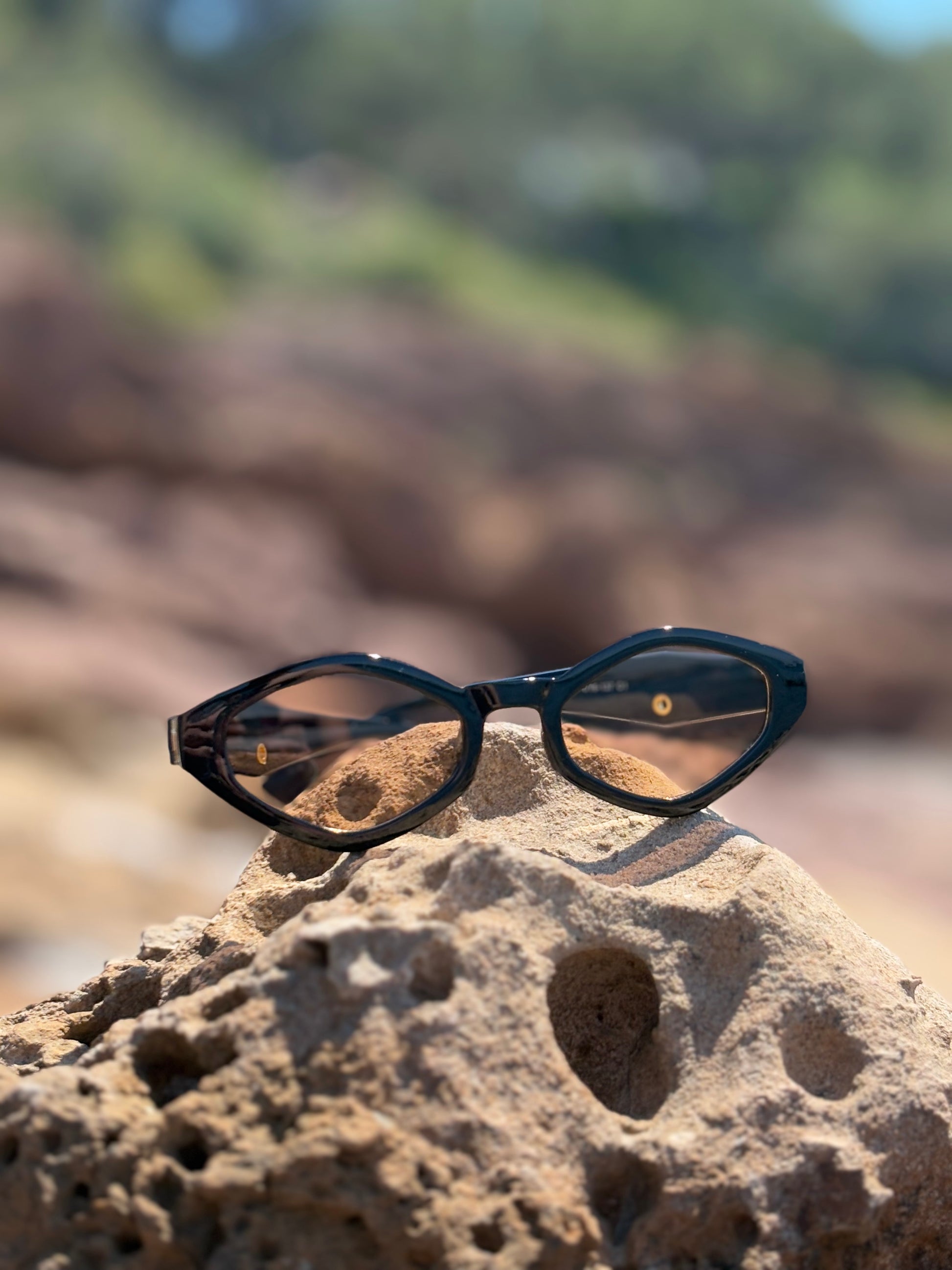 Affirmez votre style avec les lunettes Solis, un modèle à la silhouette graphique et vintage. Avec leur forme œil de chat étirée et leur monture noire brillante, ces lunettes offrent un équilibre parfait entre élégance rétro et charme contemporain. Pensées pour les esprits libres, elles sont faites pour rayonner au soleil.